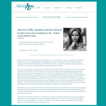 Success Talk: Sandra Garcia-Lowery, Founder of Encounter Marketing & PR + Harlem Google Digital Coach